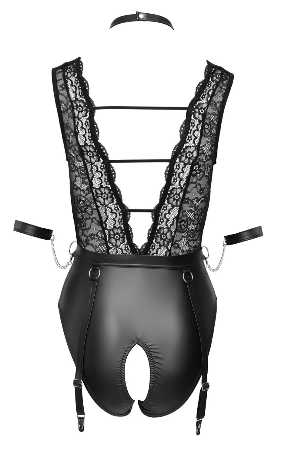 Ontdek hoe ver je kunt gaan met verleiding dankzij deze gewaagde, open body en de bijpassende bondage set!