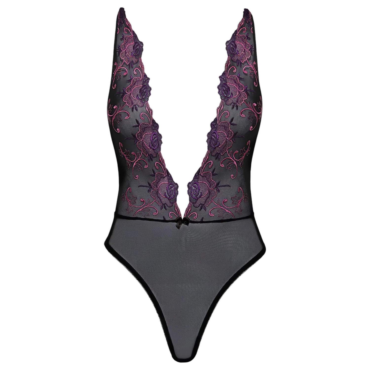 Kissable - roze geborduurde body (zwart)