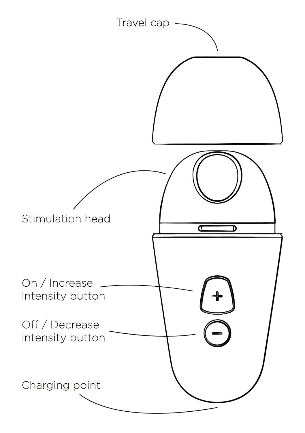 Breng eerst wat glijmiddel op waterbasis aan op het stimulerende kopje én je clitoris. Houd de + knop 2 seconden ingedrukt om de ROMP Free X aan te zetten. Plaats het kopje zachtjes op je clitoris. Met + en - kies je uit 10 intensiteiten. Uitzetten? Houd de - knop 2 seconden vast.