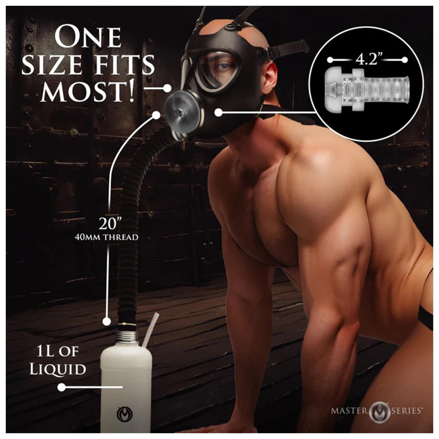 De XR Brands – zuigmasker is een speciale set met een ademmasker gecombineerd met een masturbator, die spannende zintuiglijke spelletjes en een unieke ervaring biedt voor liefhebbers van breath play.